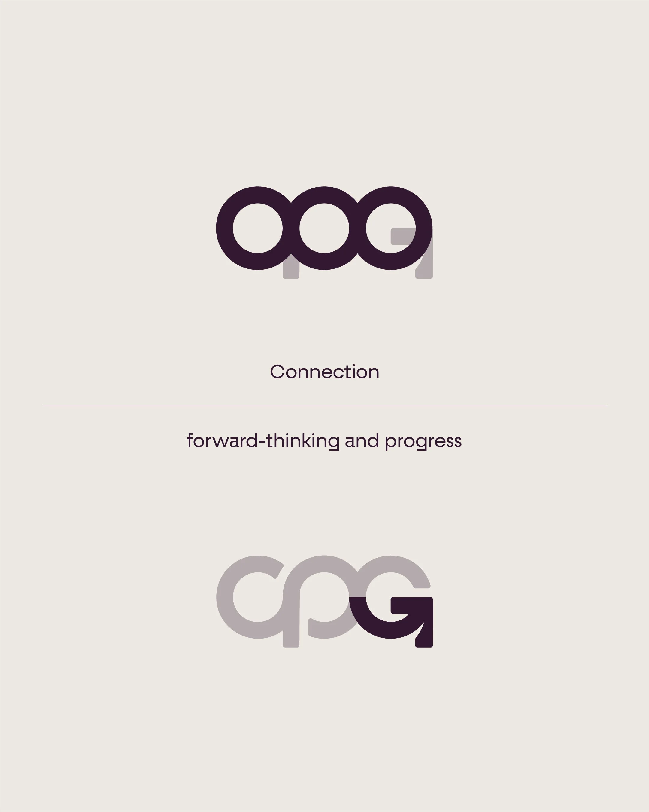 When designing the logo, simplicity was key. After conversations with the team at CPG, we decided the best approach was to create a mark that abbreviates Cultural Partnership Group to accommodate the various instances in which the logo would be presented. Through the brand Noun process I use at the start of every logo project, the primary focus for the subject matter was ‘connection’ and ‘progress’. After experimenting with various fonts, I found the best approach was a custom logo mark combining three circles, interconnecting with a forward arrow to finish off the G, symbolising the brand's forward-thinking, progress-driven ethos.